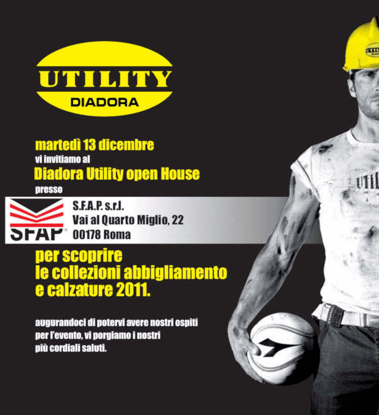 Martedì 13 dicembre 2011 partecipa al – Diadora Utility Open House per scoprire le collezioni abbigliamento e calzatura 2011. Scarica l’invito
