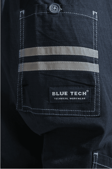 1 tasca posteriore lato dx con chiusura con bottone con due bande riflettenti