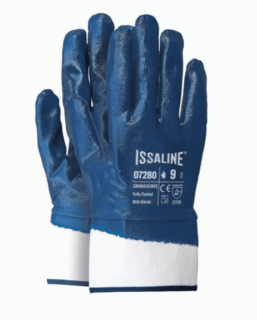 Guanto Nitrile su supporto tela/cotone, con manichetta di sicurezza. II CAT