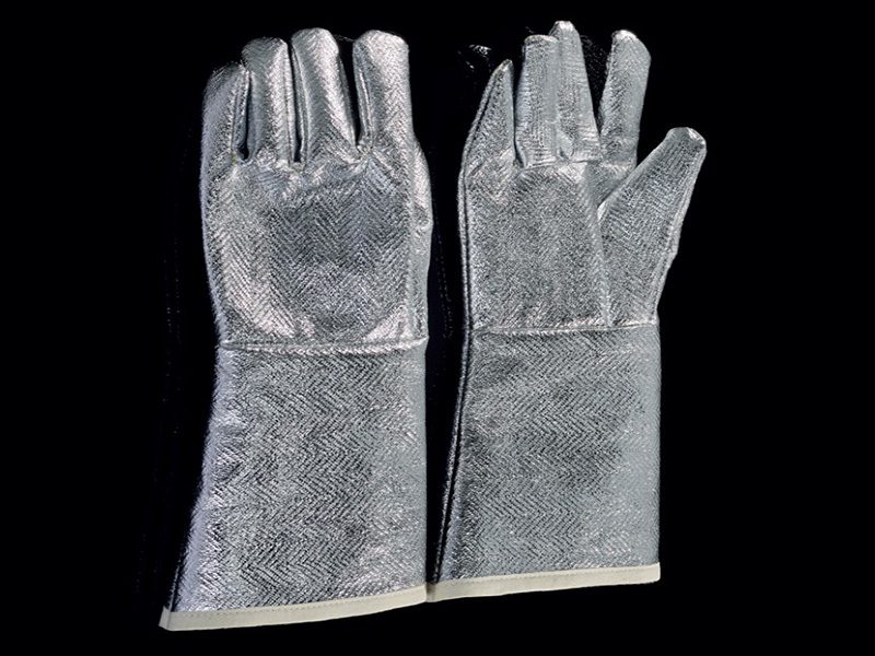 Guanti di protezione a 5 dita, palmo e dorso in fibra para-aramidica alluminizzata 540 g/mq + 5%. DPI categoria II